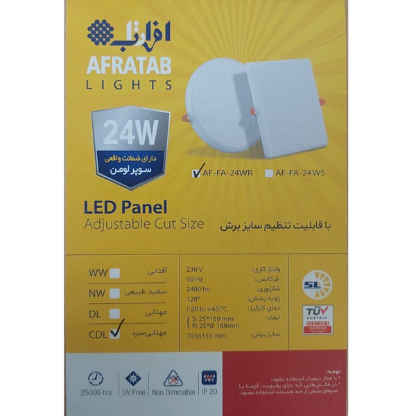 پنل سقفی توکار 24 وات فنر متغیر افراتاب