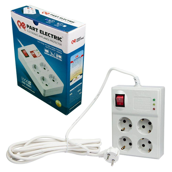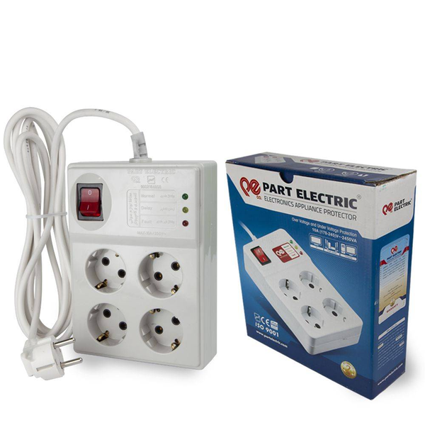 محافظ کامپیوتر پارت الکتریک لوازم صوتی و تصویری را در مقابل قطع و وصل و نوسانات شدید برق محافظت می نماید. بعد از وصل کردن کردن محافظ به برق شهر، LED زرد به علامت زمان تاخیر (DELAY) روشن می شود. پس از پایان زمان تاخیر LED زرد خاموش و LED سبز (NORMAL) به علامت برق دار شدن پریز ها روشن می شود. در صورت افت ولتاژ یا افزایش ولتاژ از حد مجاز، پریز های بطور خودکار بدون برق شده و LED قرمز (Fault) روشن می شود. پس از رسیدن ولتاژ به حد مجاز، LED قرمز خاموش و LED زرد روشن و پس از گذشت زمان تاخیر، LED سبز روشن و پریز ها برقدار خواهد شد.